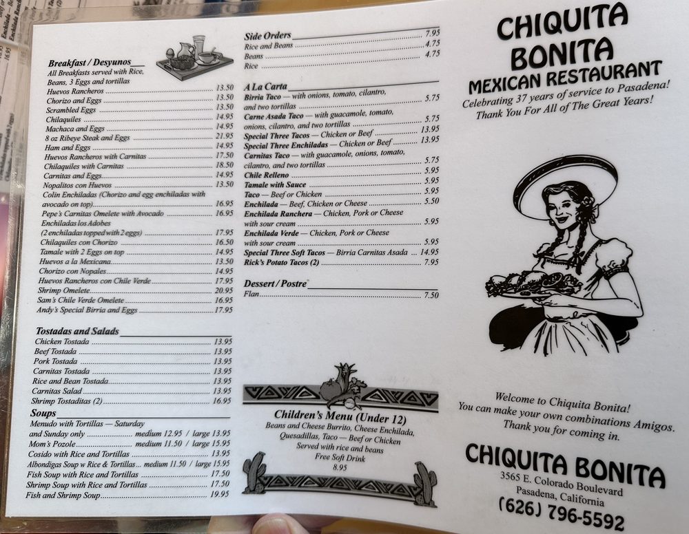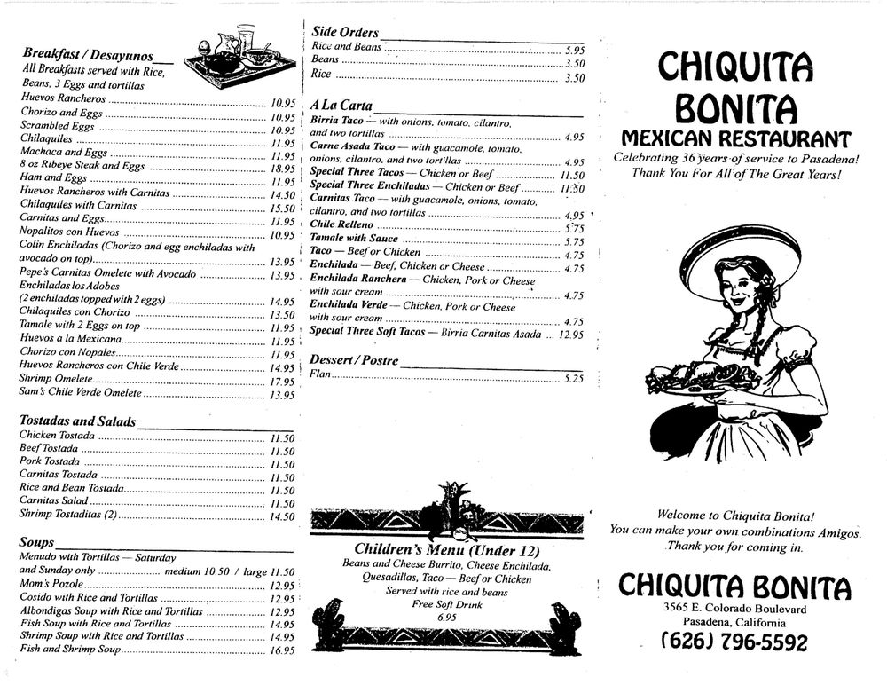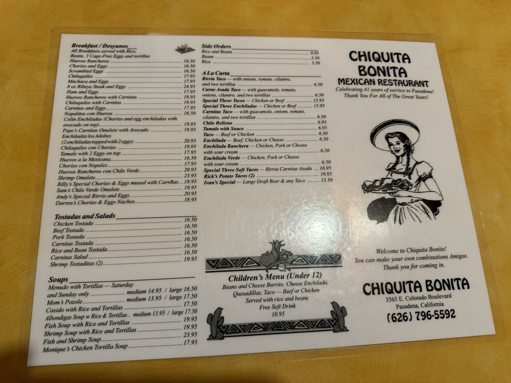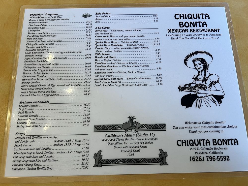 Chiquita Bonita is a hidden gem in Pasadena, serving up delicious traditional Mexican dishes with a quaint old Mexico ambiance. The menu boasts authentic flavors, with dishes like wet burritos, pozole, chile relleno, and taquitos receiving high praise from customers. The friendly staff provide quality service, and the atmosphere is welcoming and family-friendly. Their salsa is a must-try, and the homemade chips are fresh and flavorful. The portions are generous, ensuring you'll leave satisfied. Chiquita Bonita is a casual dining spot that offers catering, making it a great choice for groups or families. With options for vegetarians and a variety of happy hour specials, this Mexican restaurant is a must-visit in Pasadena.
