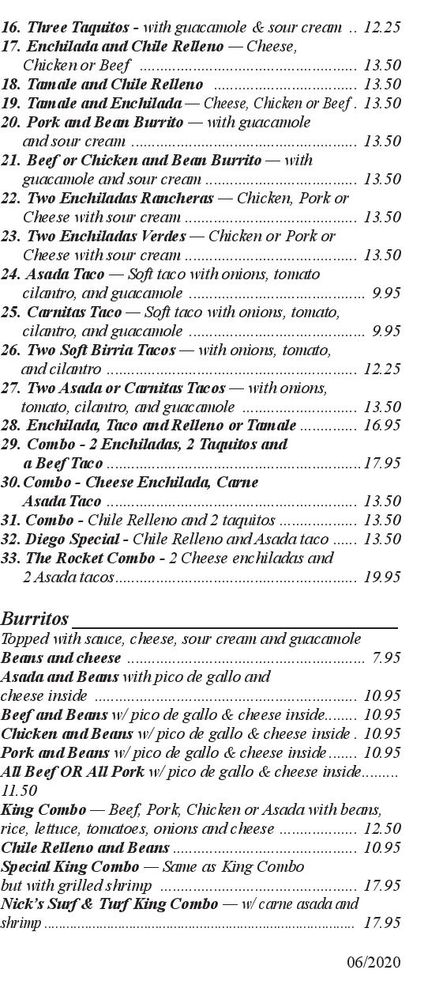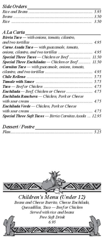 Beef, pork, chicken or asada with beans, rice, lettuce, tomatoes, onions and cheese